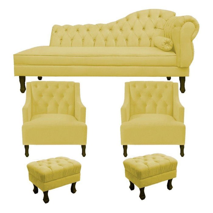 Divã Cancun 185 + 2 Poltrona Genesis + 2 Puffs Amarelo