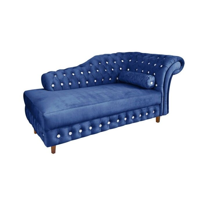 Divã Chesterfield Capitonado com Strass Suede - Azul Royal