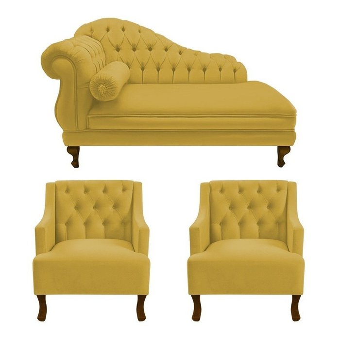 Divã Larissa 150 cm Direito de quem senta e 2 Poltronas Genesis Suede Amarelo - LM DECOR