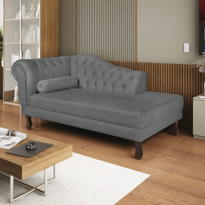 Diva Recamier Dora 130cm Lado Direito Corino Cinza