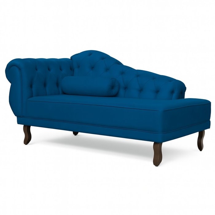 Divã Recamier Sala 150cm em Veludo Capitonê de Luxo Pés Luis Xv Azul escuro