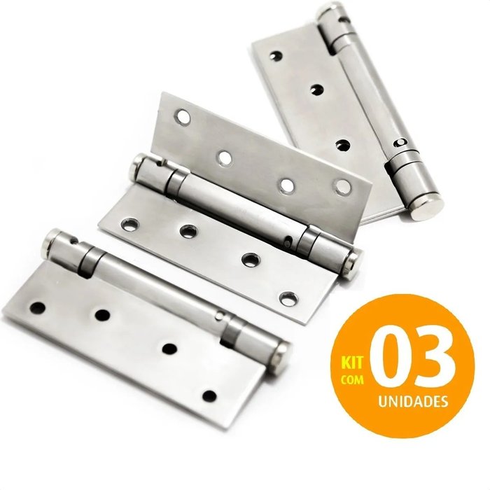 Dobradiça Com Mola 4x3 Inox Polido Kit 03 Pçs incolor
