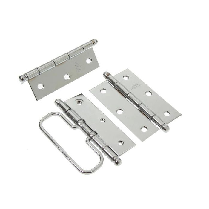 Dobradiça para Porta Camarão 3 x 2.1/2" Aço - União Mundial Cromo Acetinado