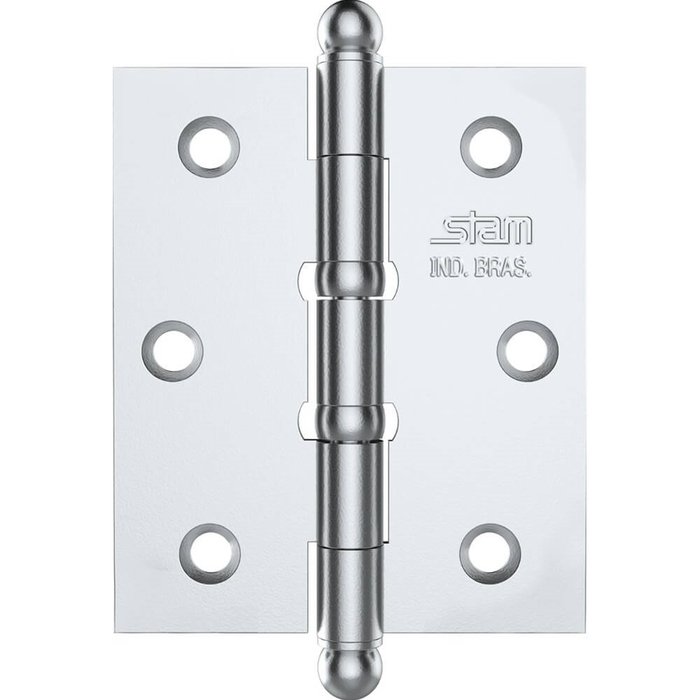 Dobradiça Pino e Bola 3" x 2.1/2" x 1,7mm com 2 Anéis e Canto Reto - STAM Cromado