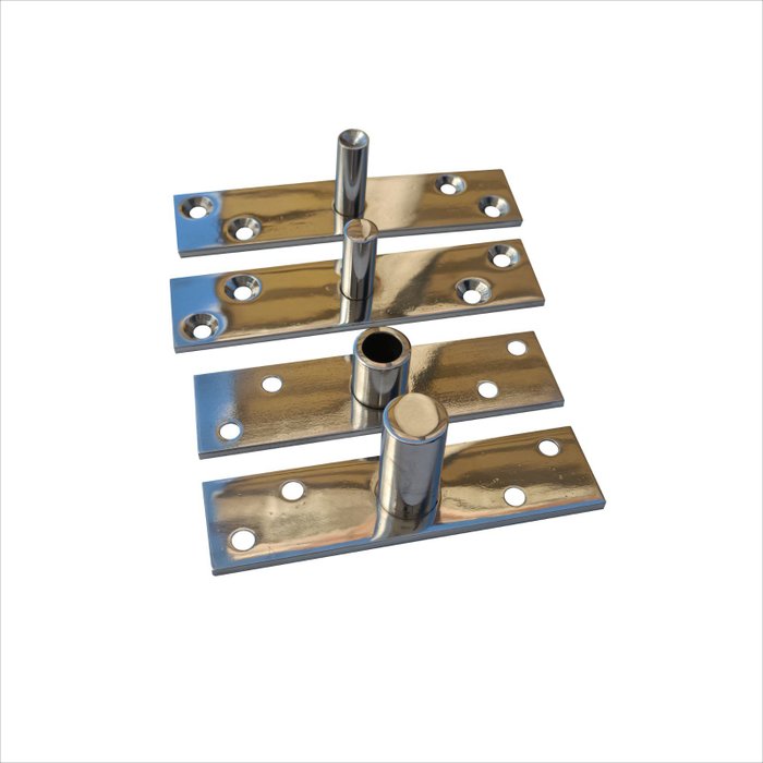 | Itens Inclusos | *01 dobradiça pivotante no aço AISI 304. *16 parafuso soberbo inox. *08 bucha N°06 de naylon |