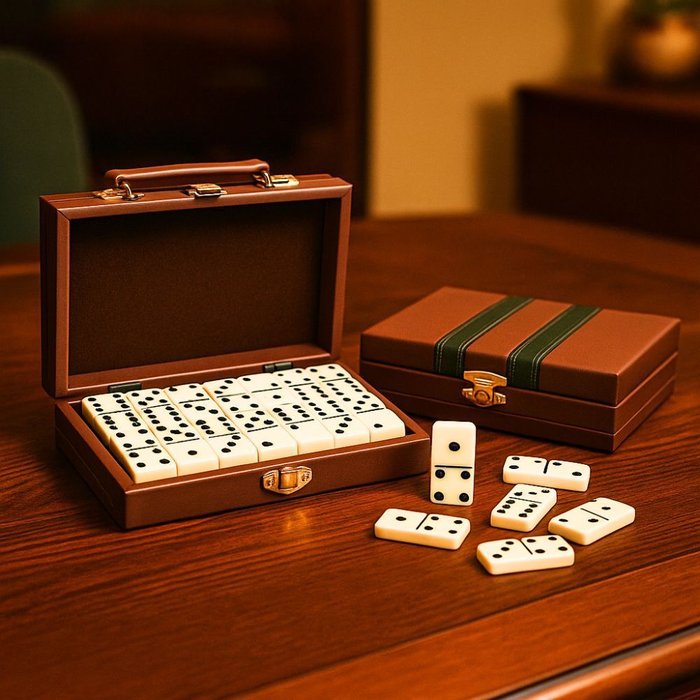 Além de funcional, o dominó com maleta de luxo se destaca como um presente exclusivo para apaixonados por jogos de salão e colecionadores.