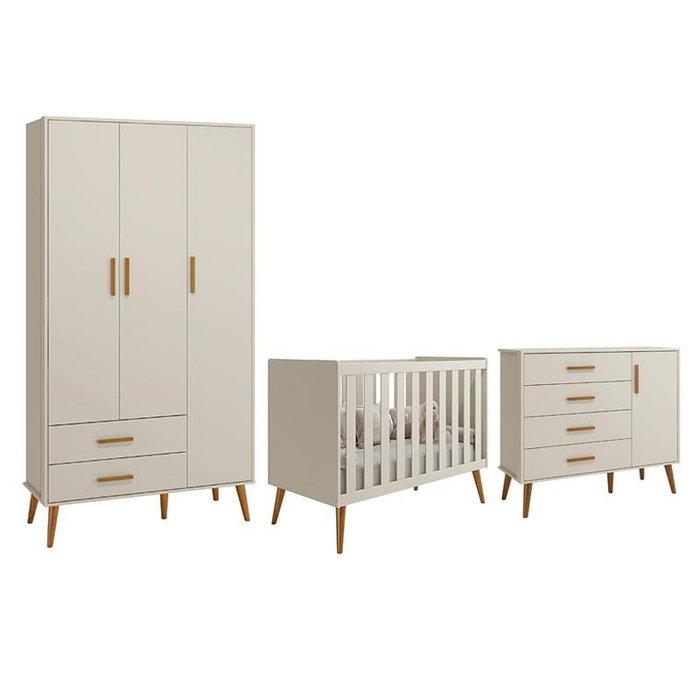 Dormitório Infantil Isis Guarda Roupa 3 Portas, Cômoda 1 Porta e Berço Areia - Reller Móveis Areia