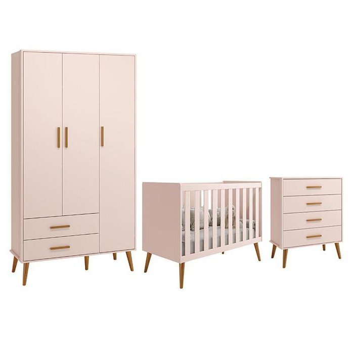 Dormitório Infantil Isis Guarda Roupa 3 Portas, Cômoda E Berço Rosa - Reller Móveis Rosa