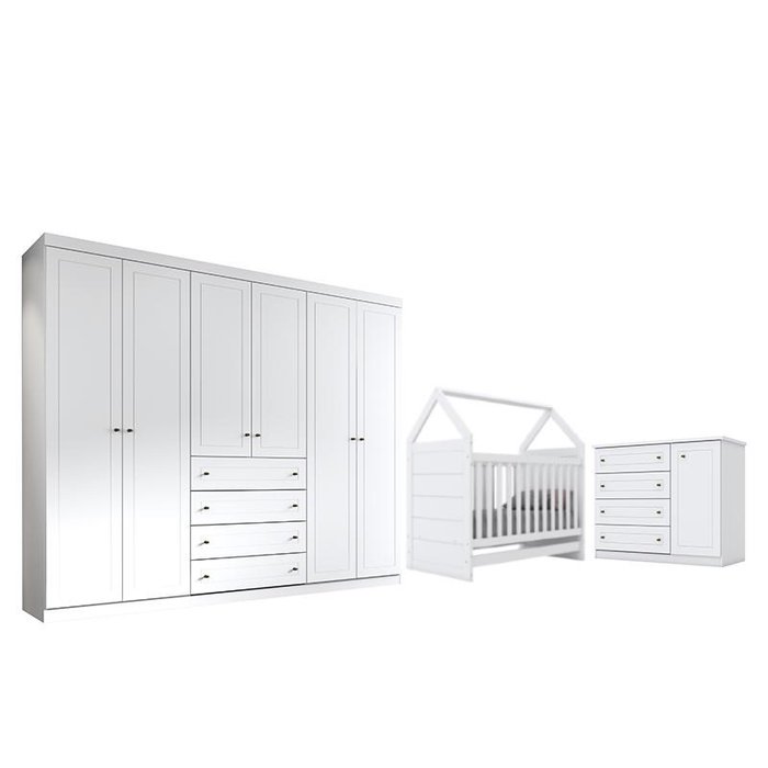 Dormitório Infantil Mississipi 6 Portas, Cômoda e Berço Cabana Branco - Móveis Henn Branco
