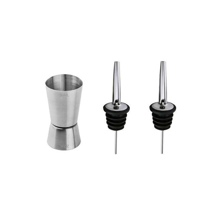 Copo dosador duplo e bico Dosador de bebidas. Dosadores são acessórios essenciais para preparar aquele drink perfeito. Acessório prático para elaborar desde bebidas simples até os mais sofisticados coquetéis. O uso do copo de dose facilita a padronização das receitas. O dosador de garrafas funciona de maneira bem simples. Basta inserir o dosador sobre o recipiente ao qual se deseja servir e despejar a bebida sobre o mesmo. O material em aço inox confere durabilidade e a base em silicone permite que o mesmo possa ser utilizado por muito tempo sem secar ou endurecer como acontece com os constituídos por borracha. Pode ser utilizado para garrafas de bebidas, azeites, vinagre, dentre outros.