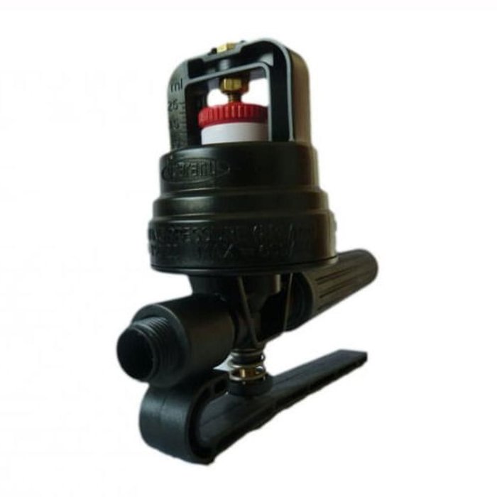 Dosador Universal de Líquidos sem Tubo Aplicador - GuaranyO Dosador Universal de Líquidos sem Tubo Aplicador Guarany é um acessório de uso universal, para dosificar volumes entre 2 a 25 ml por acionamento. O Dosador Universal de Líquidos sem Tubo Aplicador Guarany foi desenvolvido para situações que exijam alta precisão na dosagem de defensivos em geral, permitindo se obter facilmente regulagens precisas de dosagens, numa faixa entre 02 a 25 ml, por acionamento. - Possui mecanismo de controle de dosagem: Sistema inédito e seguro, funcionando pelo sistema de pressão acumulada, o que permite dosagens altamente confiáveis, com regulagem da quantidade a ser aplicada, através de uma roldana dentada. - É um acessório de construção extremamente robusta, na qual foram utilizados materiais de ultima geração, resistentes á corrosão e aos produtos químicos. Cor: Preta. Marca: Guarany.
