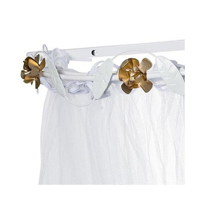 Dossel Parede Flores Douradas Com Mosquiteiro Quarto Bebê Infantil Menina Menino Dourado