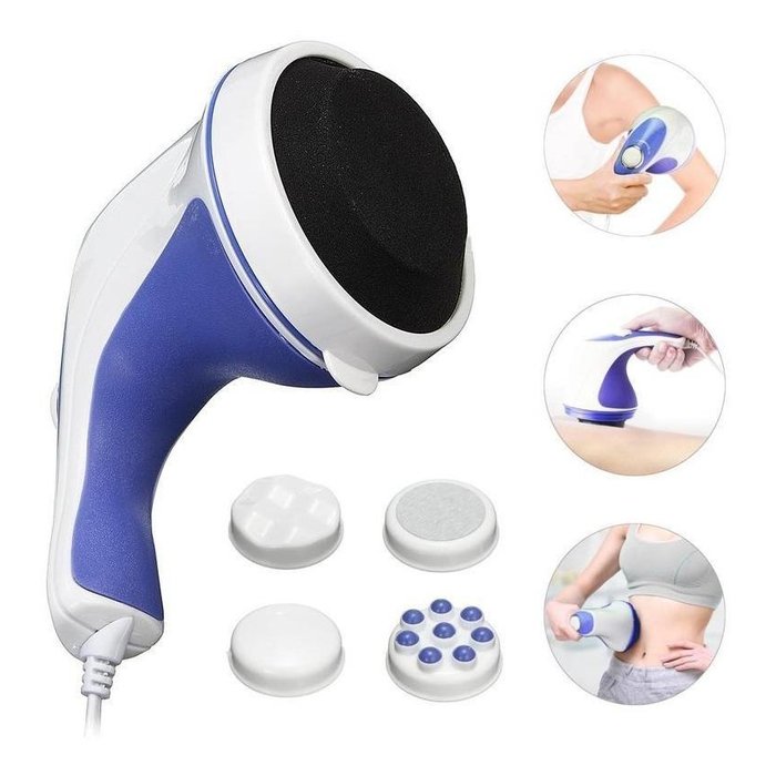 Este aparelho é um massageador elétrico portátil e multifuncional capaz de fazer o trabalho de um spa completo em apenas 15 minutos e o melhor, no conforto de sua casa através de uma potente vibração circular e 4 discos diferentes, um para cada função do massageador, você desfruta de uma excelente massagem que poderá aliviar as dores em diversas partes do corpo, obter auxílio na queima de gordura e ainda realizar modelação corporal.