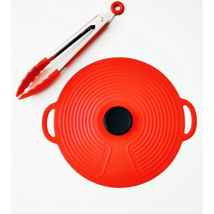 Duas Peças Pinça Multiuso e Tampa 23cm de Diamentro em Silicone Unyhome Vermelho