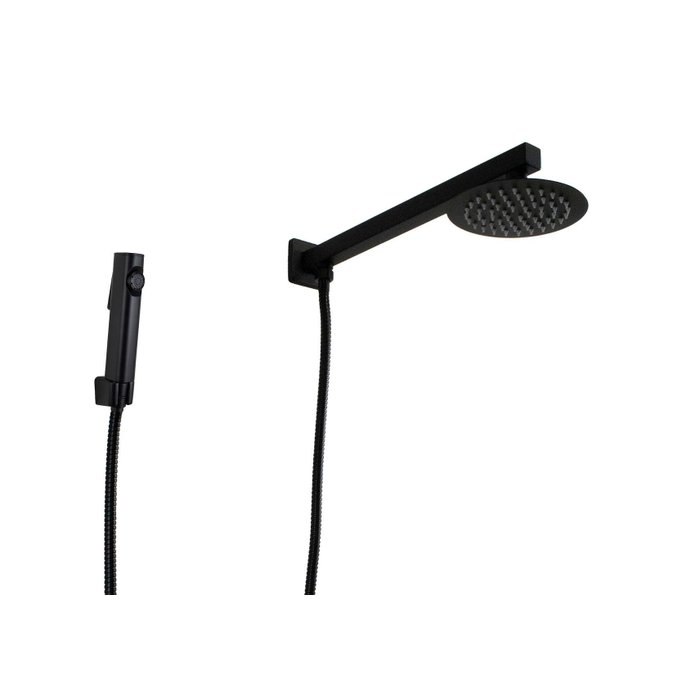 Ducha 15 Cm Preto Fosco em Inox com Chuveirinho Manual em Abs Preto