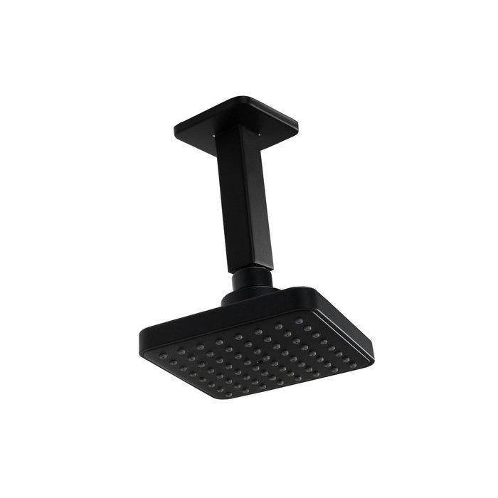 Ducha Quadrada ABS Preto Fosco 10x10 cm com Cano Suporte de Teto 10 cm em Metal