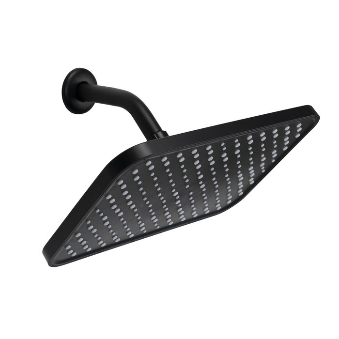 Ducha 30x20 cm Preto Fosco Retangular ABS com Cano Redondo de Parede