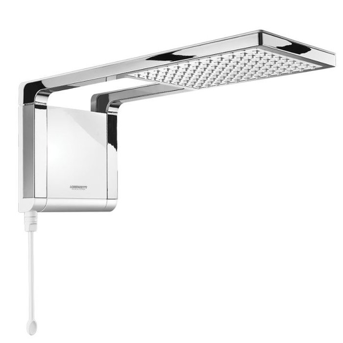 O Chuveiro Acqua Storm Duo Branco/Cromado Lorenzetti possui acabamento moderno e sofisticado com linhas quadradas e design compacto.