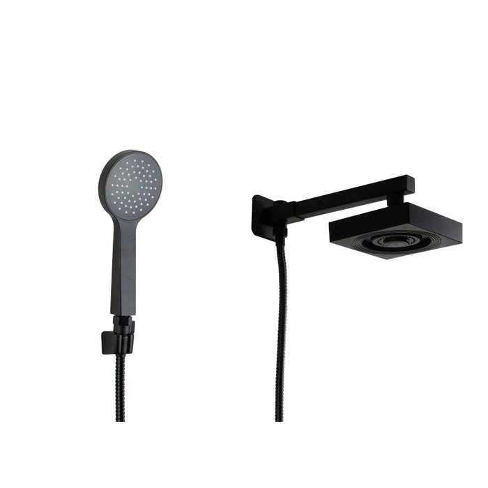 Ducha Chuveiro Quadrada em ABS Preto Fosco Autolimpante com Desviador e Chuveirinho Manual em ABS Redondo com Trava
