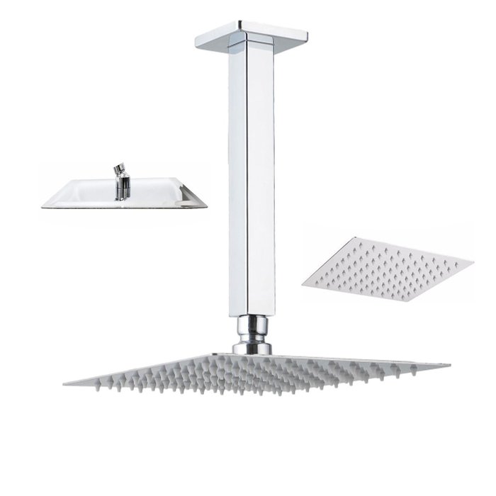 Ducha Chuveiro 20x20 Inox Quadrado Suporte Teto Luxo Slim Banheira Piscina Banheiro Area Externa Prata