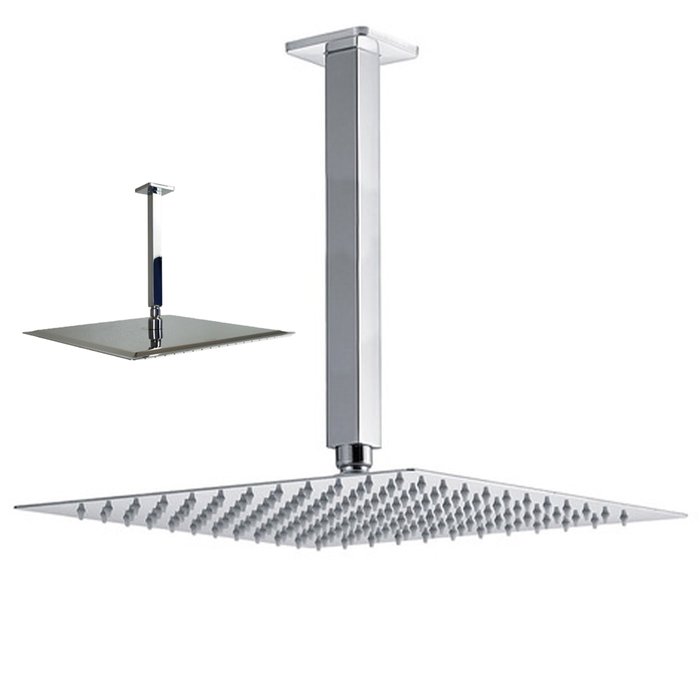 Ducha toda em aço inox na medida de 20x20cm com braço quadrado de 40cm.