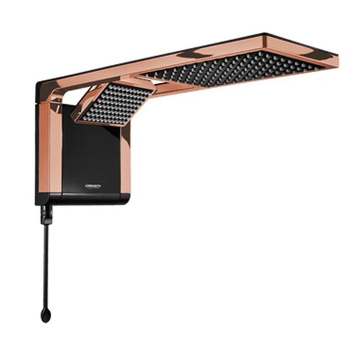 Ducha Chuveiro Acqua Duo Alta Vazão Lorenzetti - Preto e Rose Gold Para dar continuidade ao grande sucesso da Linha Acqua Ultra, a Lorenzetti surpreende mais uma vez com um produto sofisticado que possui acabamento moderno com linhas quadradas, design compacto, “Similar ao design de duchas Frias” e que integra ducha e chuveiro em um único produto.