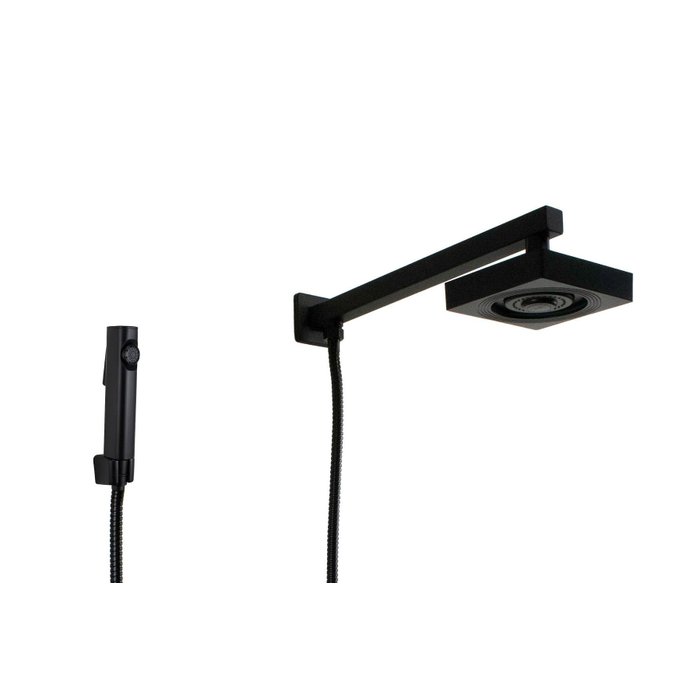 Ducha Quadrada em ABS Autolimpante Preto Fosco de Parede com Duchinha Manual Retangular em ABS