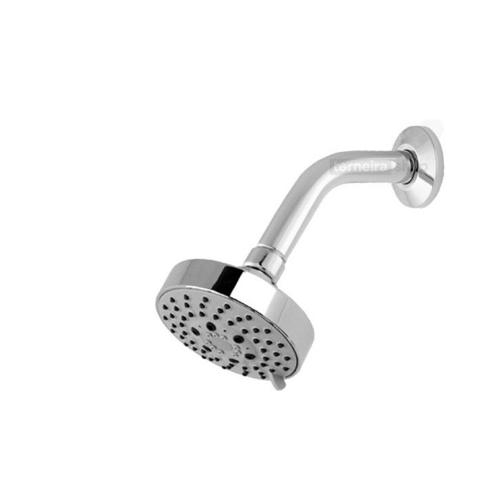 Composição do produto: Ducha em ABS cromado Salt-Spray 144 horas; braço e canopla em metal cromado;