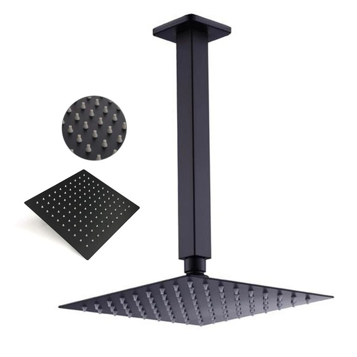 Ducha Chuveiro Inox Quadrado 20x20 Suporte Teto Preto Fosco Luxo Piscina Banheira Area Externa