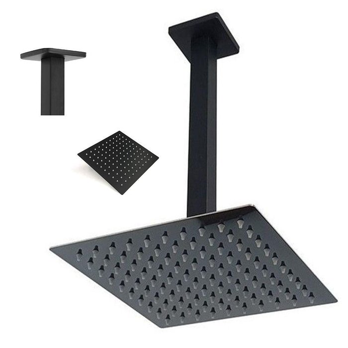Ducha Chuveiro Preto Fosco Inox 20x20 Suporte Quadrado Teto Luxo Piscina Banheiro Area Externa Banheira