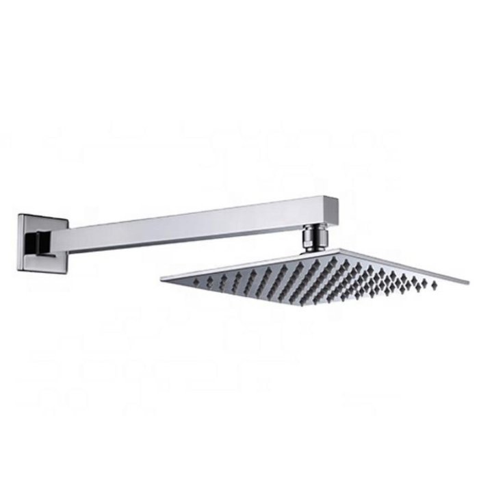 Ducha Chuveiro Quadrado 20x20 Slim Inox Piscina + Braço 40cm