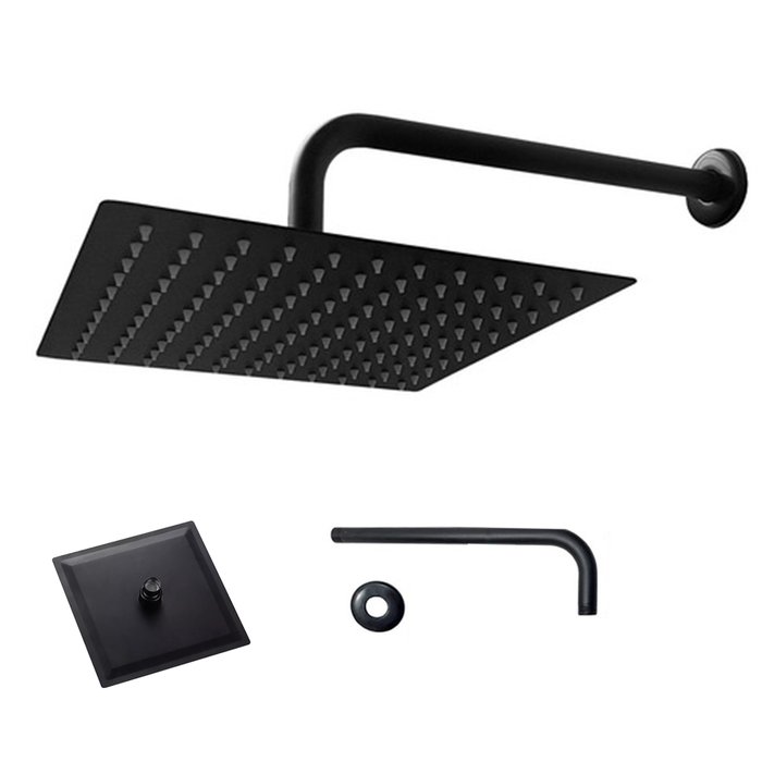 Ducha Chuveiro Quadrado Slim 20x20 Parede Suporte Preto Fosco Area Externa Banheiro Piscina Leva pro Preto