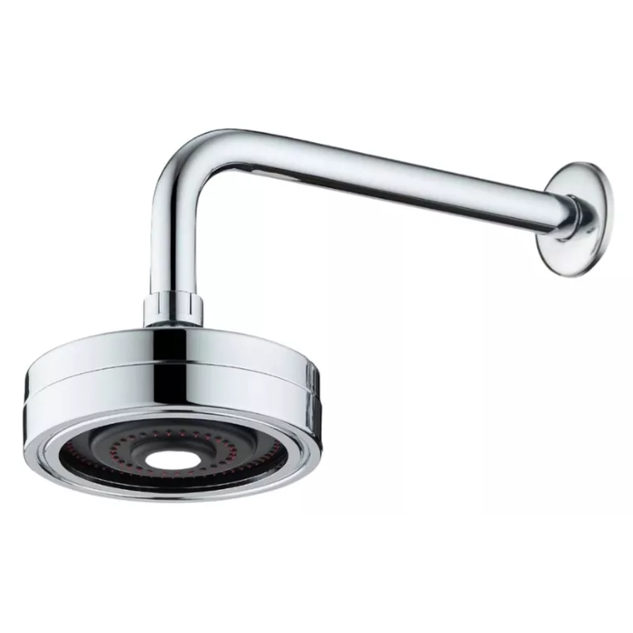 Ducha articulável com sistema autolimpante em ABS e braço de chuveiro redondo metal de parede, com acabamento cromado brilhante de alta durabilidade, resistência e livre de ferrugem;