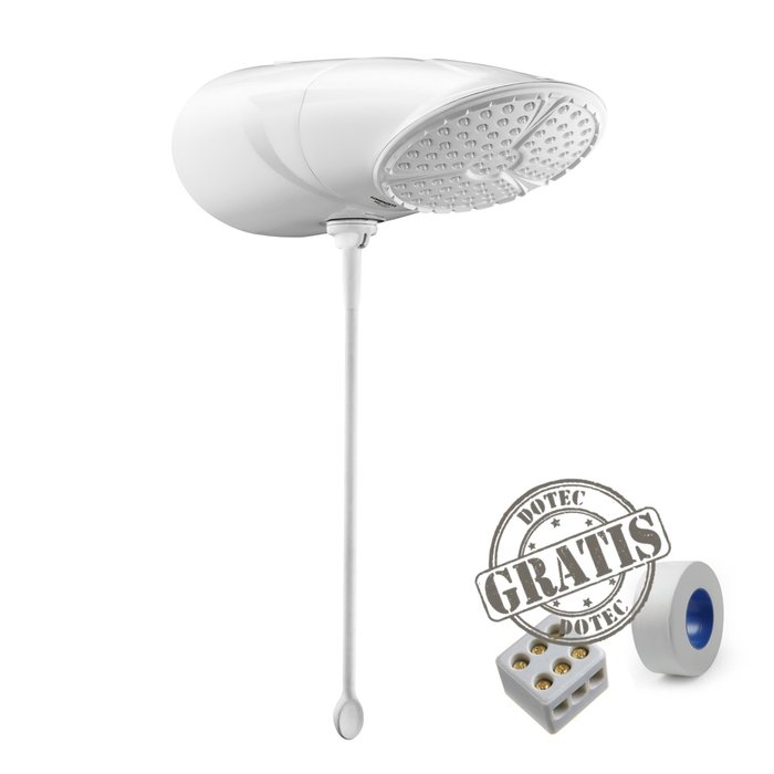 Esta procurando um chuveiro novo para ter aquele banho revigorante? Aqui na Dotec voce encontra muitas opcoes de Chuveiros que são enviados com todos os itens que você precisa para deixar tudo pronto para o uso. Além da ducha com os seus acessorios como mangueiras, chuveirinho e suporte, nós enviamos o conector de cerâmica para que a instalação seja feita de forma segura e prática sem a necessidade de fita isolante. Em todos os nossos chuveiros tambem enviamos uma fita veda rosca de 10m, mais que suficiente para fazer a instalacao da ducha e nao ter problemas com vazamentos futuros. Fora isso, vale lembrar que a Lorenzetti a mais de 50 anos é fabricante de chuveiros e sempre se recicalndo com tecnologia de ponta. Com a Ducha Lorenzetti Top Jet você tem o conforto e o prazer de um banho das famosas e conhecidas duchas de parede, conta com um grande espalhador e maior área de banho para um jato incrível. Com 4 temperaturas pré-definidas proporciona mais conforto e economia em todas as estações do ano. Acionamento super prático através de botão ou exclusiva haste prolongadora de 30 centímetros que facilita o acesso. Uma ducha que mistura linhas curvas e arrojadas, é assinada pela equipe Lorenzetti de design premiada pelo Museu da Casa Brasileira em 2011. A Ducha Top Jet é compatível com aquecedores solares, aumentando sua abrangência de utilização. VANTAGENS -Comando Multitemperaturas: Mais conforto e economia -Resistência de Troca Rápida: Tipo refil, de fácil acesso -Grande Espalhador: Mais satisfação em seu banho Características: Marca: Lorenzetti Material Predominante: Plástico ABS Cor: Branco Pressão: 1 a 40mca Voltagem: 220V Potencia: 7500W Controle de Temperatura: Eletronica Regulagem de Inclinação: Sim Instalação: Parede Garantia: 12 meses Itens inclusos: 1 Ducha Lorenzetti Top Jet Eletronica 1 Chuveirinho 1 Mangueira 1 Suporte para Chuveirinho 1 Conector Elétrico 3 Polos de Cerâmica 1 Fita Veda rosca de 10m Tudo em nosso armazém para envio imediato!