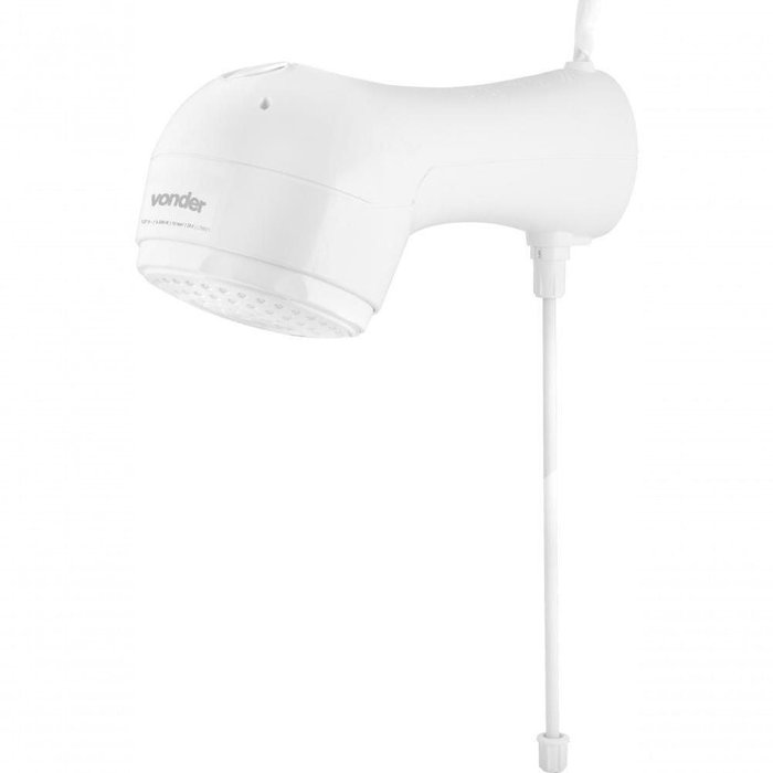 Marca: Vonder Conteúdo da embalagem: 1 Ducha eletrônica com resistência. Acompanha: 1 mangueira, 1 chuveirinho e 1 suporte para chuveirinho. Destaques e diferenciais: Possui ajuste eletrônico de temperatura progressivo, sistema com alto poder de aquecimento e jato inclinado, que proporciona uma maior área de banho, além de possuir haste prolongadora, que facilita a seleção de temperatura. Conta ainda com resistência com sistema de troca fácil, câmara interna com copo, que garante que a resistência permaneça submersa, evitando a queima e garantindo maior eficiência e chave geral de alimentação para uma maior segurança em manutenções. Detalhes Técnicos Modelo: Eletrônica Potência: 5.500 W Disjuntor indicado: 50 A Seção nominal do condutor (mm²): 10,0 mm² Temperatura máxima de entrada de água: 50°C Diâmetro do jato dágua: 124 mm Cor: Branca Rosca de entrada (NPT): 1/2 NPT Tensão (V): 127 V~ Massa aproximada (peso) (kg): 1,079 kg Garantia - E (CDC): Garantia legal: 90 dias + Garantia contratual: 9 meses NA