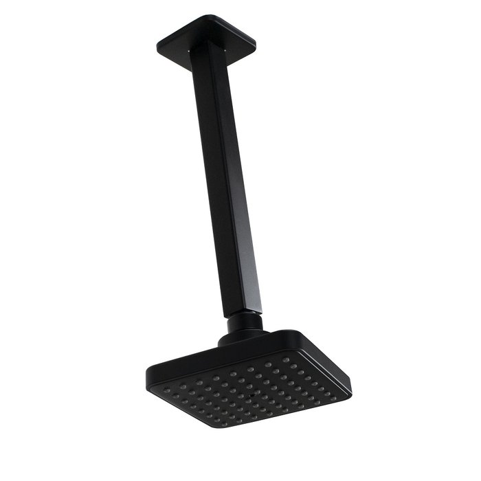 Ducha Quadrada 10cm Preto Fosco em ABS com Cano de Teto 24 cm em Metal