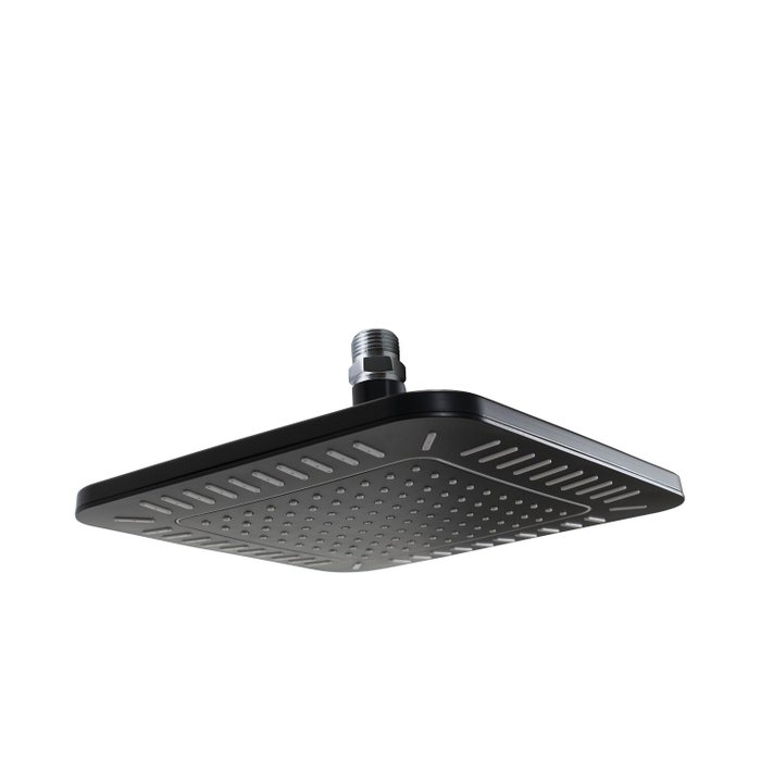 Ducha Flatt Chuveiro Quadrado ABS 21x21 cm Preto Fosco com Niple de Teto 1/2
