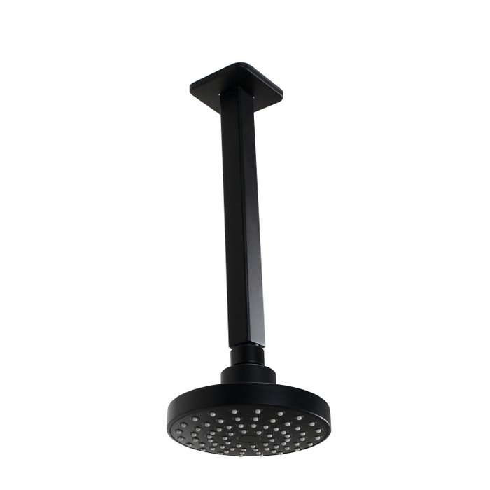 Ducha Redonda Chuveiro de ABS Preto Fosco com Cano Suporte de Teto 24 cm Preto