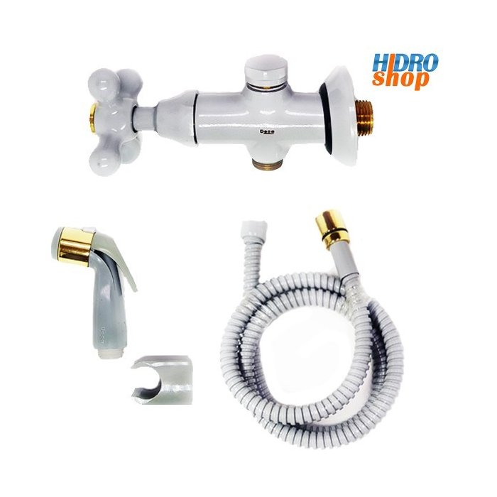 Acompanha: - Registro Ducha Higiênica Com Derivação - Ducha Higienica Activa Cinza Com Dourado - Flexivel Cinza Com Dourado