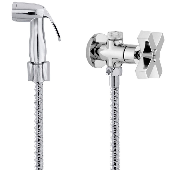 Ducha Higiênica com Registro Derivação 2 Saídas 1/4 Volta Metal Gatilho Luxo Abs Flexível 1,20M C44 Cromado