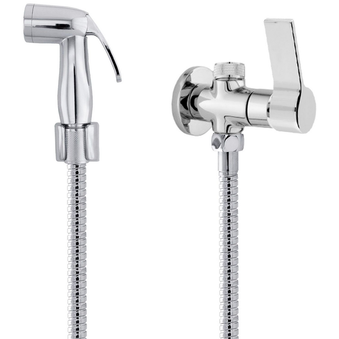 Ducha Higiênica com Registro Derivação 2 Saídas 1/4 Volta Metal Gatilho Luxo Abs Flexível 1,20M C77 Cromado