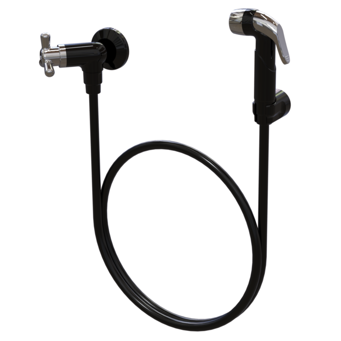 Ducha Higiênica Modelo Registro 1/4 de Volta Comp. 120cm Linha Vienna Cor Preto e Cromado Durín Preto e Cromado
