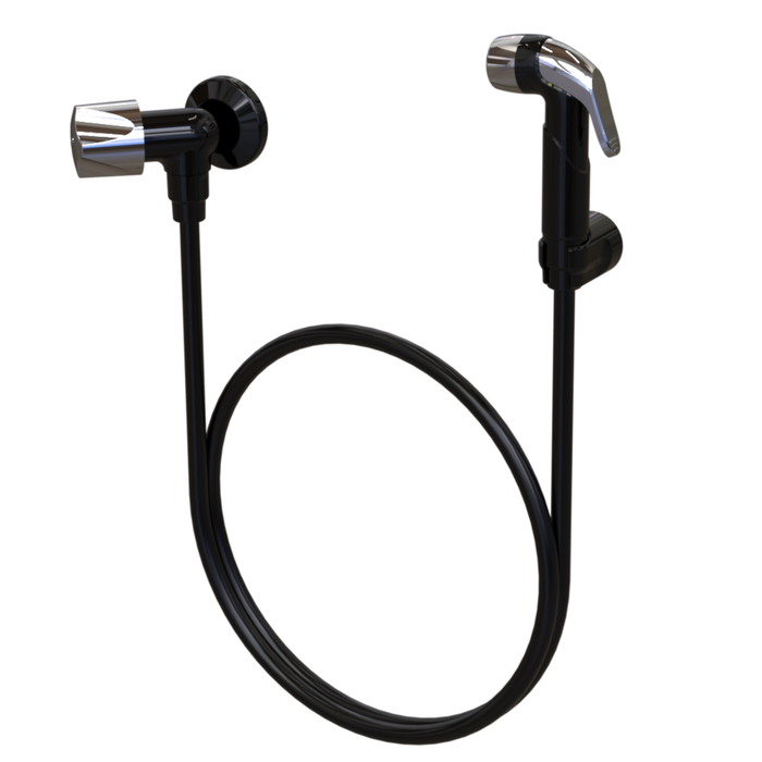Ducha Higiênica Modelo Registro Convencional Comp. 120cm Linha Búzios Cor Preto e Cromado Durín Preto e Cromado