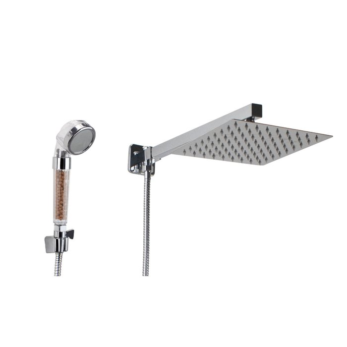 Ducha Inox 20 Cm com Ducha de Mão C/ Esferas Ionizantes Cinza