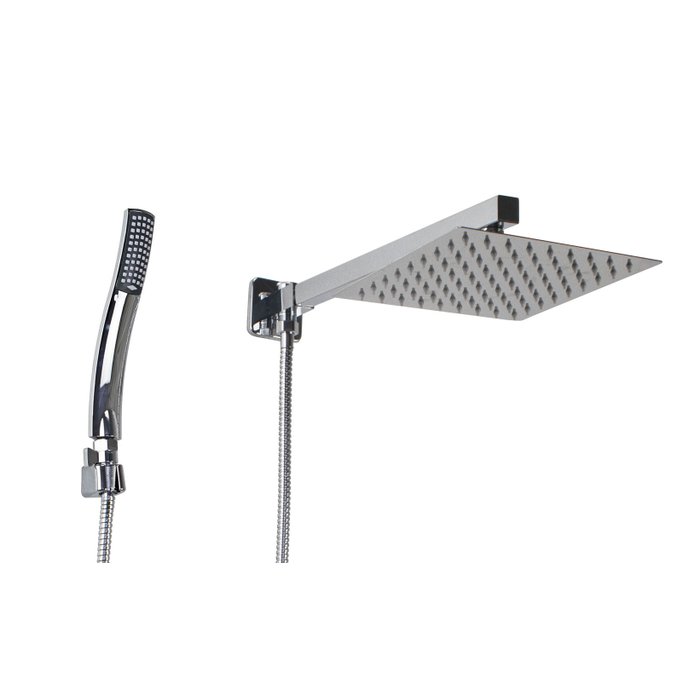 Ducha Chuveiro Inox 304 20x20 cm Quadrado com Cano de Parede e Desviador Quadrado com Duchinha de Mão Retangular em ABS com Trava