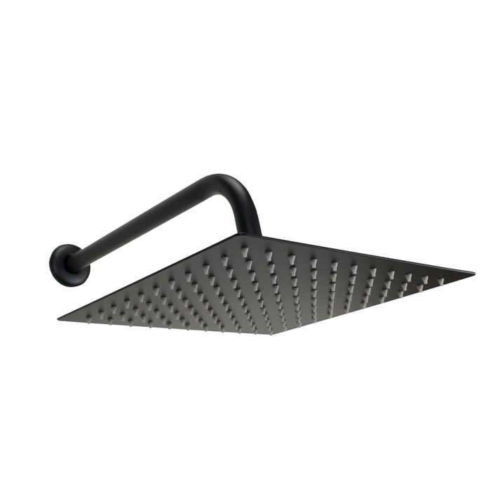 Ducha Quadrada Inox 304 25 cm Black Matte com Suporte Cano de Parede Redondo