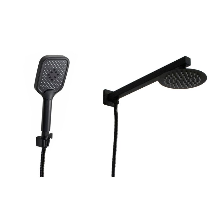 Ducha Redonda em Inox 15 cm Preto Fosco com Ducha de Mão em ABS com Trava