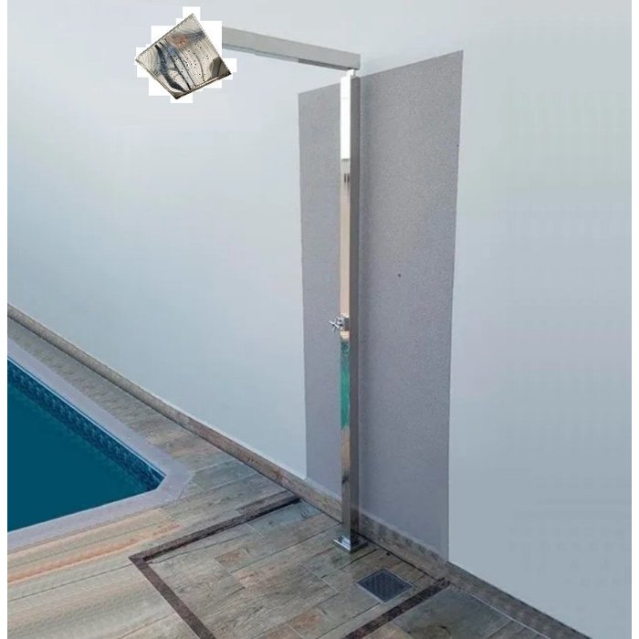 Ducha Palito 30cm de piso inox 304 p/ piscina ou sauna "L" Tubo Quadrado
