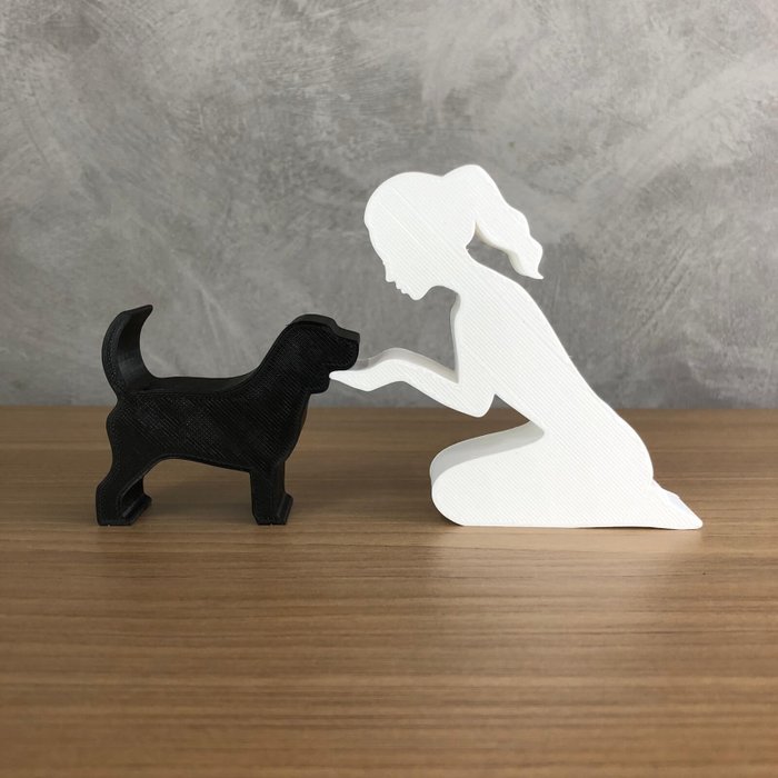 Dueto Menina e seu Beagle Vegras Preso Branco