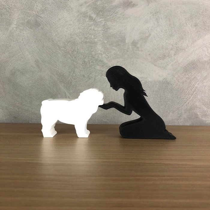 Dueto Menina e seu Buldogue Inglês Pequeno Vegras Liso Preto